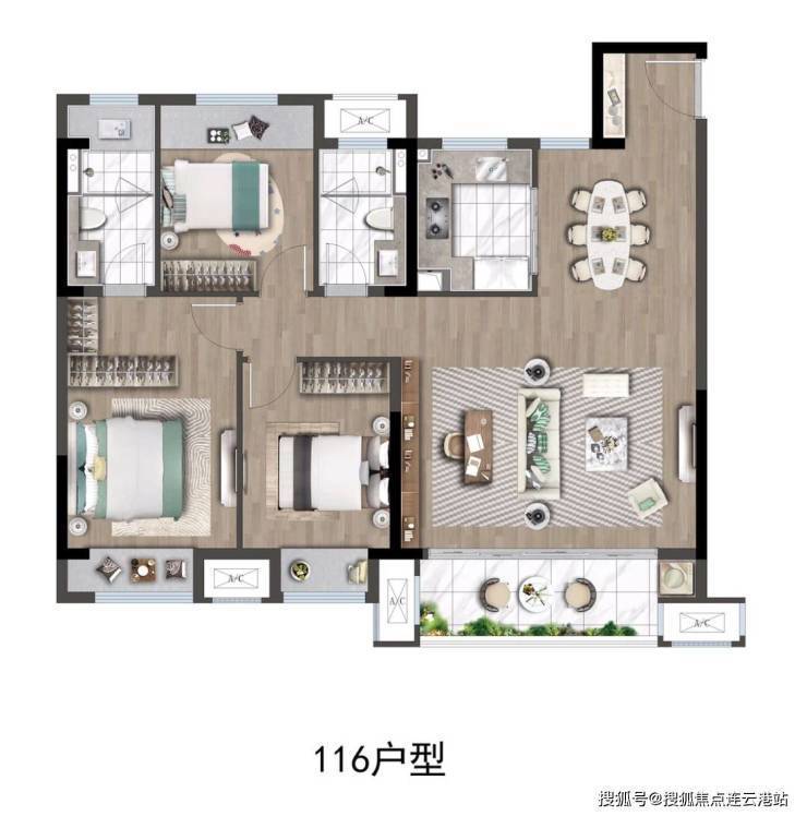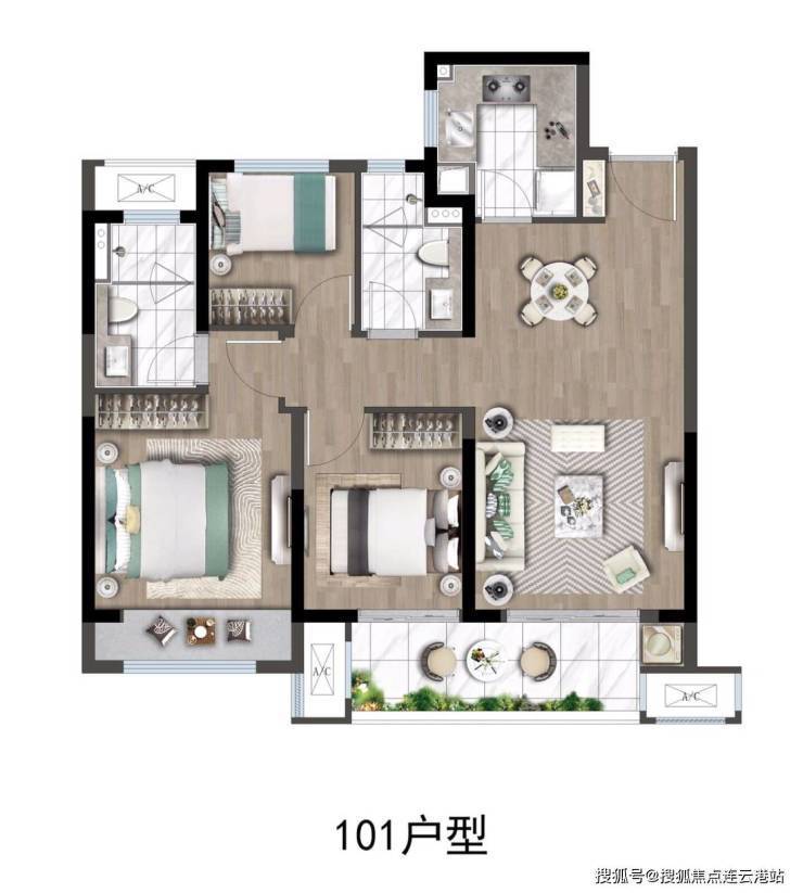 户型亮点:南北通透、大横厅设计、连体景观阳台,部分楼栋主卧套房布局