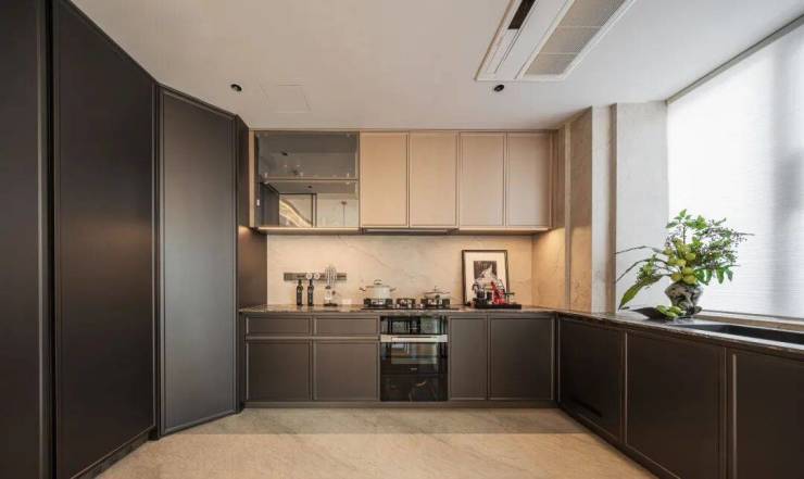 The kitchen is equipped with the top German luxury brand Meno, including a dishwasher, a steam oven and a double-door refrigerator.
