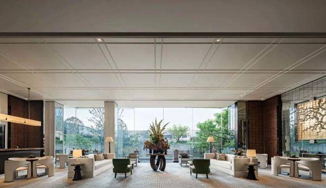 生活馆打破传统平面布局,创新性地将会所与泛会所融为一体,大面积玻璃幕墙消融室内外的界限,把茶室、健身房、瑜伽室、恒温泳池、私宴厅、棋牌室等空间都面向庭院景观,这样的配置,放眼全杭州都难得一见。