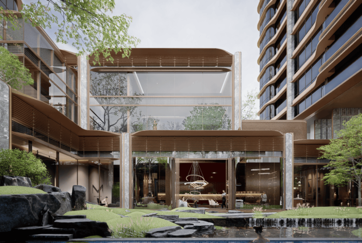 将宋代名画《溪山行旅图》解构重组的"六境园林",更看到了为仅60席别墅业主专属定制的"知行"巷境。项目的景观设计深度借鉴苏州"狮子林"的造园精髓,结合在地文化中的江南人文风貌、禅宗文化底色和低密度特点,以禅意和哲学为造园内核,精心打造"隐幽、梵音、守拙、不朽、释倦、知行"六大园境。