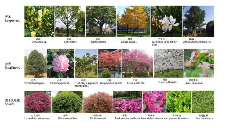 四季更迭的景观植被巧妙布局,共有20多种乔木、小乔、灌木等植物种类,营造出“四季有色”的美妙景象。