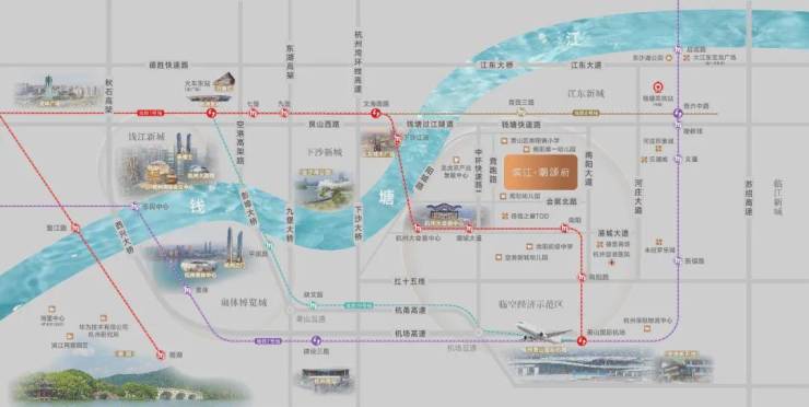 潮颂府位于大会展中心周边1公里的核心区域,牢牢占据临空经济示范区核芯,不仅远见板块崛起,其交通优势更是堪称“王炸”,将杭州繁华版图紧密缝合。