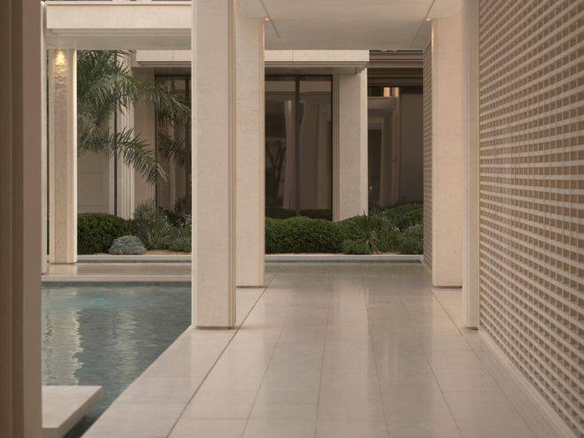 作为首个度假风情的住区,璟逸汲取希腊安缦酒店与Gundari度假村的精髓。素雅的米白石壁墙引领访客,穿行于水院与连廊之间,步入白色莱姆石建筑群,冰蓝水面与沙生植物交织的闲适景致,仿佛将圣托里尼的暖阳拥入怀中。