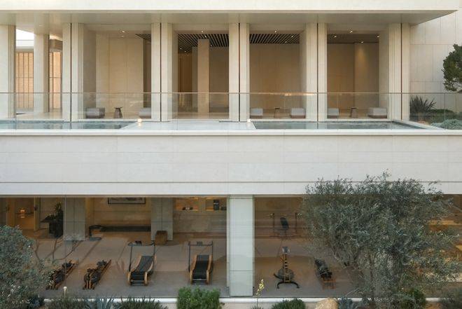 它将行政酒廊与砾石花园自然衔接,又以无边观景平台延展至下层会客空间,营造出纯净而优雅的高差漫游体验,让行进的每一步皆成风景的延续。