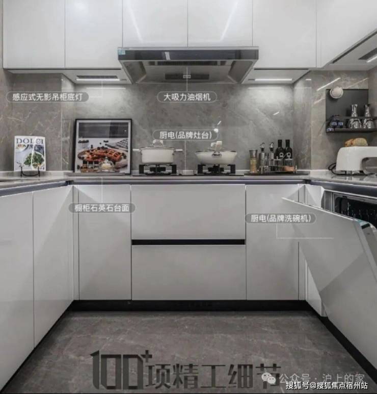 4、厨房应采用橱柜、厨电一体化设计。应配置冰箱、燃气灶、油烟机等厨电。