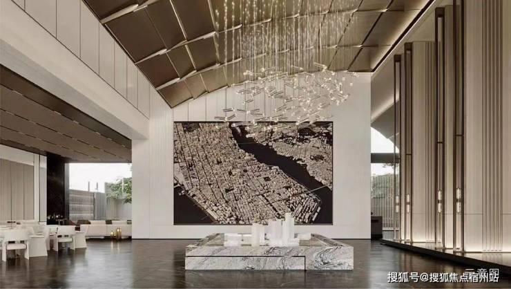 现在的门头就是以后的归家大门,挑高约6.8米,长约28.6米。第一眼看上去,极具视觉冲击力。