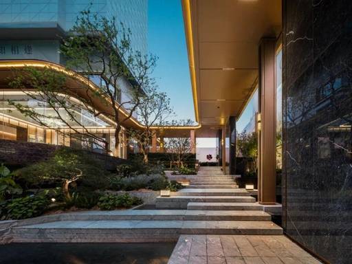 项目的庭院实景,可以明显感受到,它区别于之江以往的任何一个项目,最直观的体会就是“拾级而上,一步一景”。