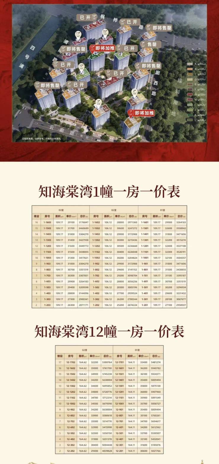 西湖区之江的绿城知海棠3月23日公示最新预售证,加推1#、12#,共2幢77套房源,面积106-109-164方,均价预3.2051万/平。