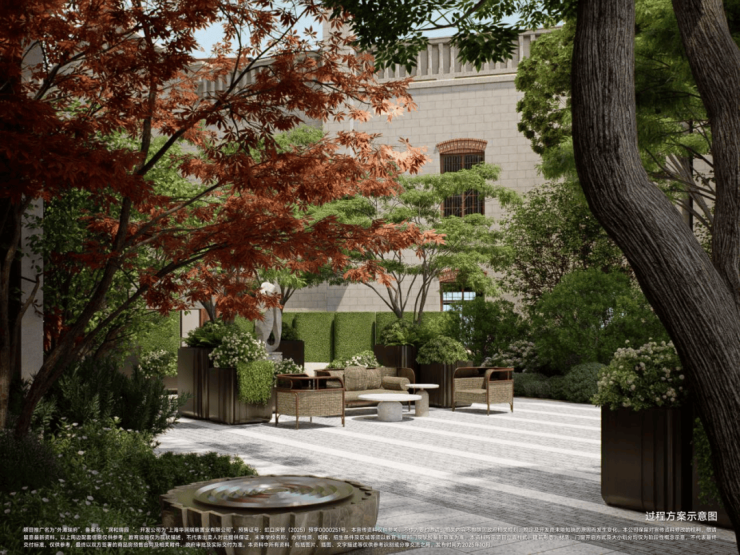 在寸土寸金的内环核心,“造园” 远比 “建房” 更具挑战。外滩瑞府打造约 3200㎡中央花园,这在上海顶豪市场中实属罕见。项目以度假式造园理念为核心,提炼印象派艺术名画灵感,打造六大主题园境。