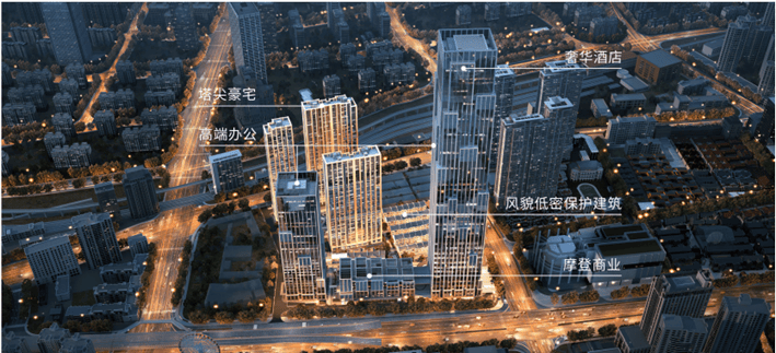 It is the residential part of the approximately 550,000-square-meter urban complex [Bomao Plaza], including 3 super high-rise residential buildings ranging from 139 to 150 meters (a total of 576 units) and 39 villas in the style of Shikumen.