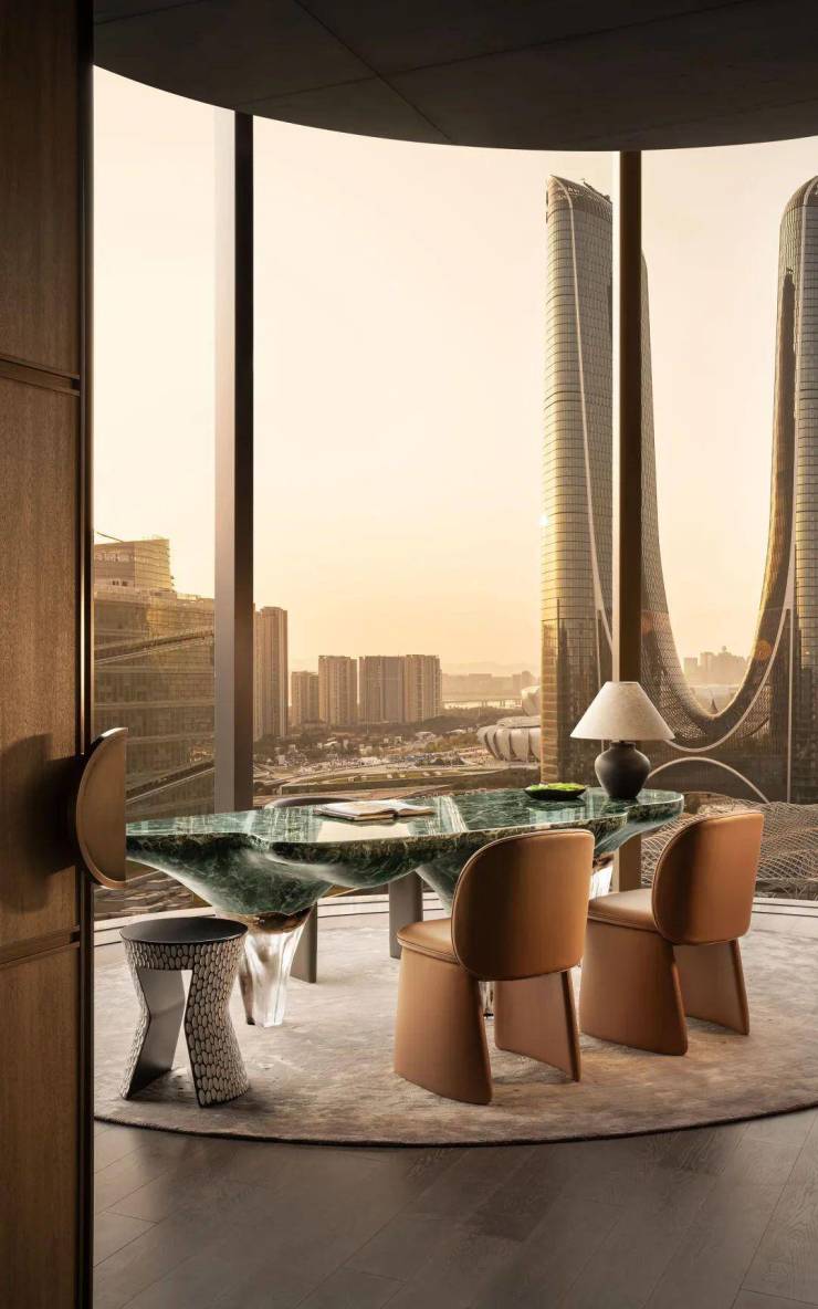 270度转角大窗,可近距离观赏到城市地标建筑,云光过隙、彩云流转,充盈着峡谷般的神秘气息。此个空间,于坐立行走中与自然元素联动融合,让生活其间的人拥有了一个唤醒灵感的机会,而故事还在继续。