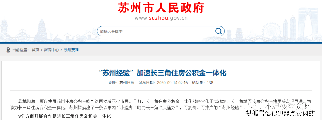 新政太长,简单来说一句话:长三角三省一市公积金,可在苏州贷款买房。就是说,“沪漂”一族在上海工作,缴纳的公积金可以在苏州买房时使用。