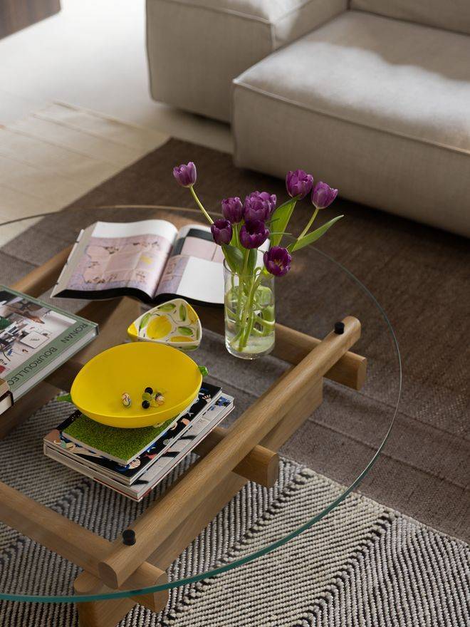整体室内采用了大地色系为基调,如米白、浅灰、橡木色。局部点缀深色木色,营造沉稳、温暖的氛围。材质也是橡木地板,艺术涂料,天然石材台面相互搭配。强调材质的天然肌理与触感,传递出温润、质朴的美学感受。