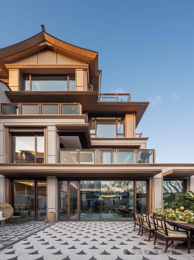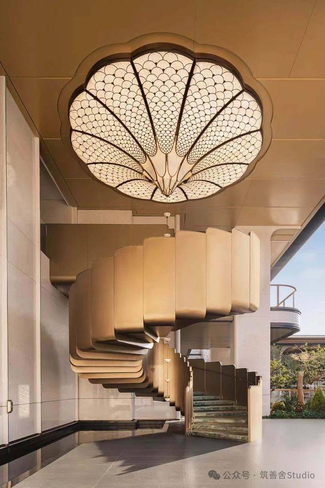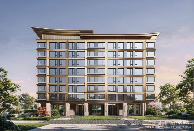 小高洋房建筑以“诗意东方”为灵感,创新演绎东方美学。立面设计融合石材基座与三面铝板,铝板与玻璃幕墙的轻盈通透,与干挂石材的沉稳厚重形成对比,既彰显耐用性,又传递通透美学。中式飞檐灵动飘逸,宛如钱江潮涌,在城市天际线上勾勒出动感韵律,让建筑成为一道亮丽的风景线。