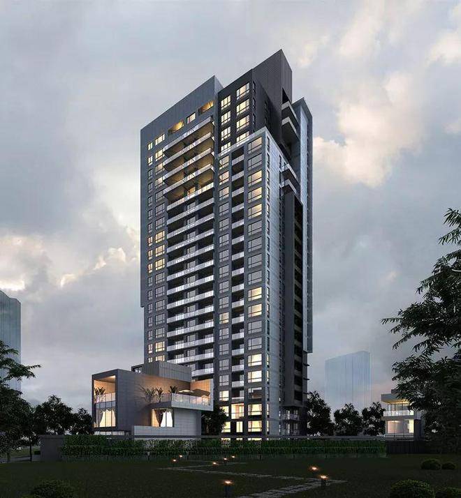 项目主要是由两栋别墅和一栋高层组成,采用人车分流设计。两栋别墅均是开发商自持,仅高层一栋出售,规划商业建筑面积500多平方米,提供高档社区精品生活服务。