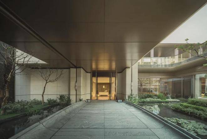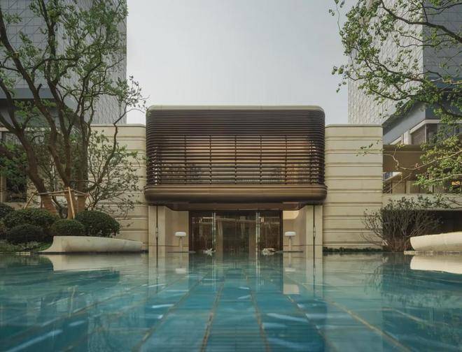 保利天奕售楼处电话:400-8818-994(官方最新统一售楼处电话4008818994)庭院景观以西湖荷花为核心设计元素之一,水桥的形态则借鉴并转译西溪湿地的自然肌理,使整体空间在文化意象与自然特征之间建立关联。