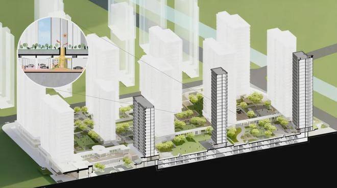保利天奕售楼处电话:400-8818-994(官方最新统一售楼处电话4008818994)为彻底消融城市与社区的界限,项目以“超级底盘”重构社区基座。通过抬高地库、整合车站与商业配套,将地下空间转化为多功能垂直枢纽。