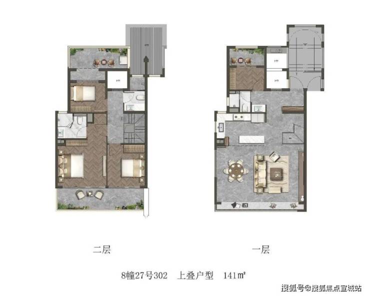 建面约141-150㎡3房,约151-160㎡4房叠墅