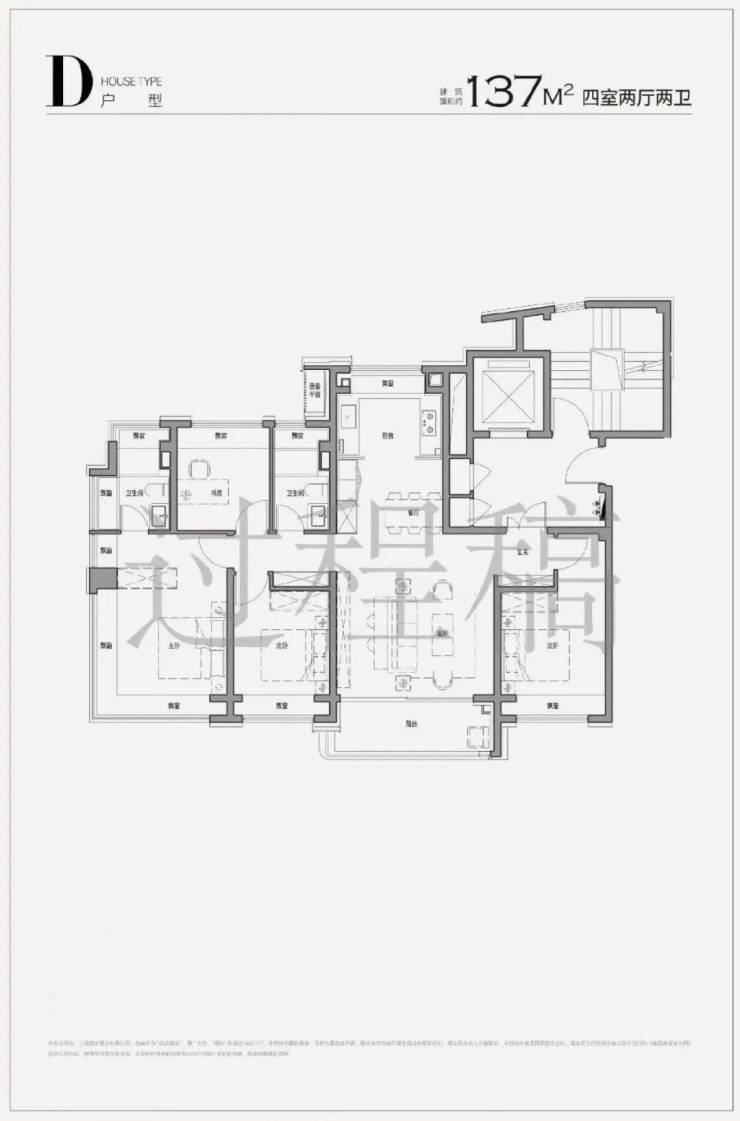137㎡四房:270°转角飘窗,客餐厨阳台一体化设计。