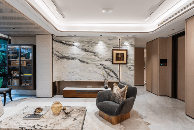 其次,奢华用材+艺术细节,营造高阶美学氛围