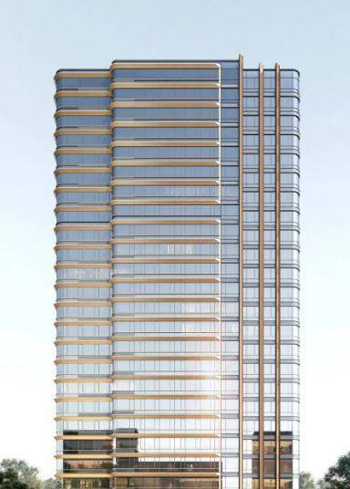 68米金色大门、弧形铝板外立面,搭配浅金与深陶色系,凸显高级感。