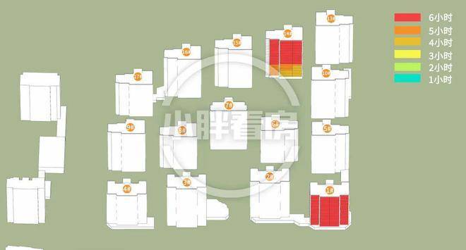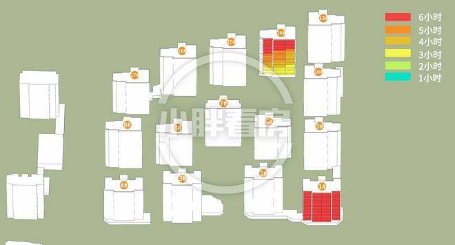 滨江时舟里的分析结果是这样:计算已考虑周边所有建筑的影响,结果表明周边建筑不会对本次开盘楼栋产生遮挡,楼栋仅受地块内部遮挡。(说明:本文日照数据基于公示规划图纸文件,使用专业制作工具完成,仅供参考)