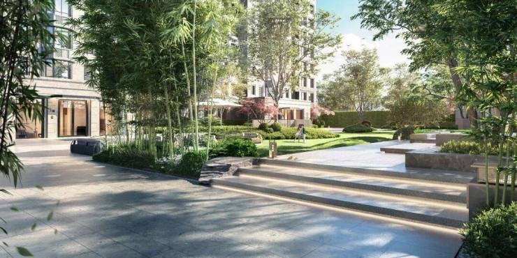 社区景观规划不仅考量精致美学和社区功能的表达,更为高净值家庭带来了惬意松弛的度假式生活。当古北99将这两个关键词“低密+墅区”组合在一起,就意味着这是一个在城市核心地段且舒适度绝佳的珍稀社区。