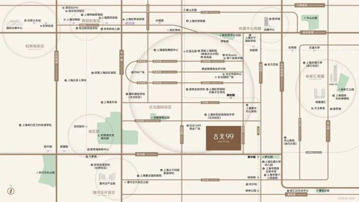 休闲娱乐国际化,附近的老外街,日系百货高岛屋,古北SOHO,程十发美术馆、上海油画雕塑院,上海儿童博物馆,名都体育公园还有约13万方的新虹桥中心花园;