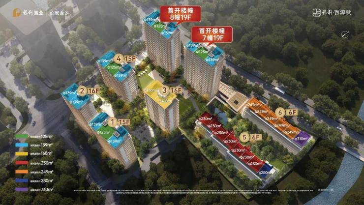 西源赋一共规划了6幢高层+2幢叠墅,高层建面约125-168㎡,全四房户型,总价389万起。