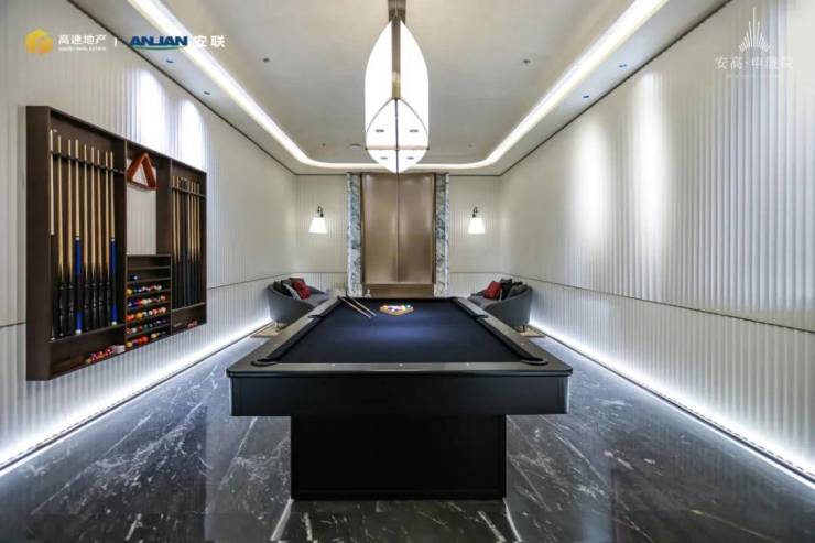 会所还配备了2个棋牌室、1个撞球室、1个影音室,满足业主日常的娱乐生活。说实话,这个真的是得会所够大才能设置的空间,为业主带来更多的休闲方式。