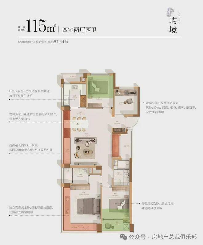 大量赠送面积的拓展,使其拥有约97.44%的超高得房率,堪比市场面主流约150㎡+户型的实用空间。
