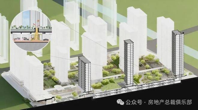 新规允许底层架空平台下方的停车空间不计容,使得地面车库得以转化为抬升社区的基座。