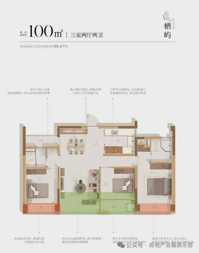 亮点:整体抬高约3.8米,首层6米全架空,最高得房率达100%。