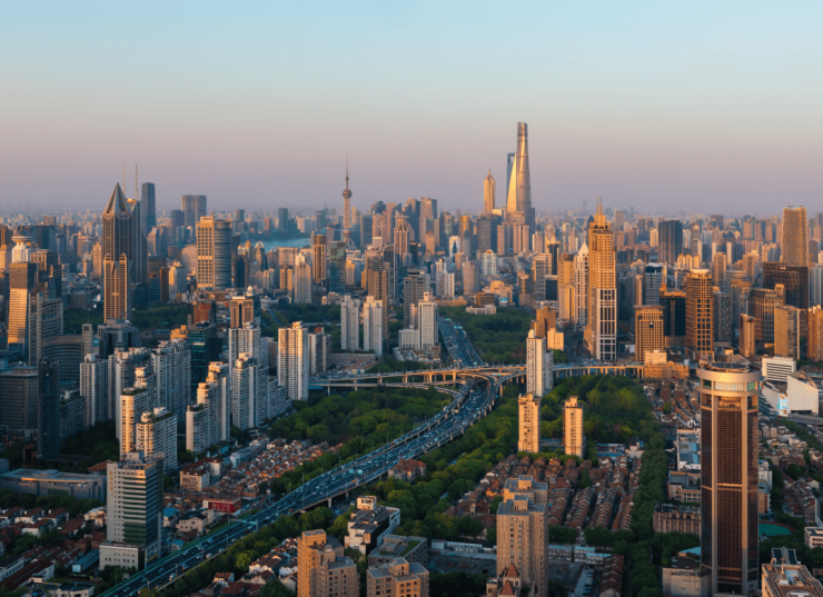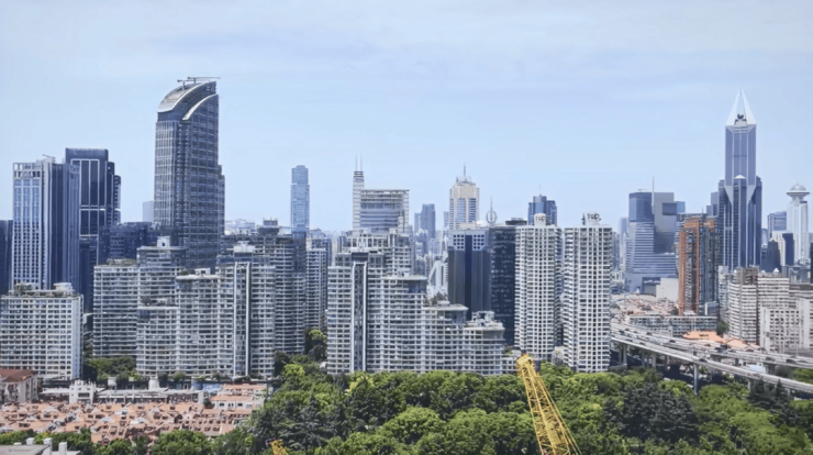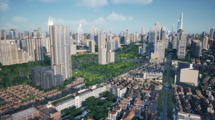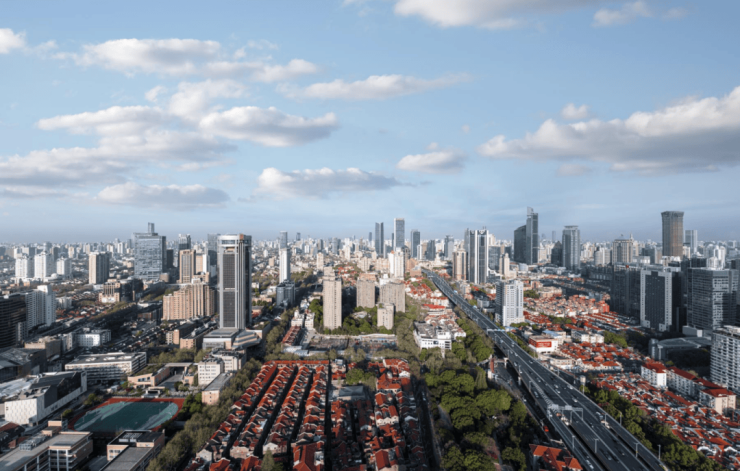 Looking eastward: The green Spaces in Yanzhong spread out like jade, and the Shikumen community of Xintiandi and the "three-piece set" of Lujiazui are in the same frame.