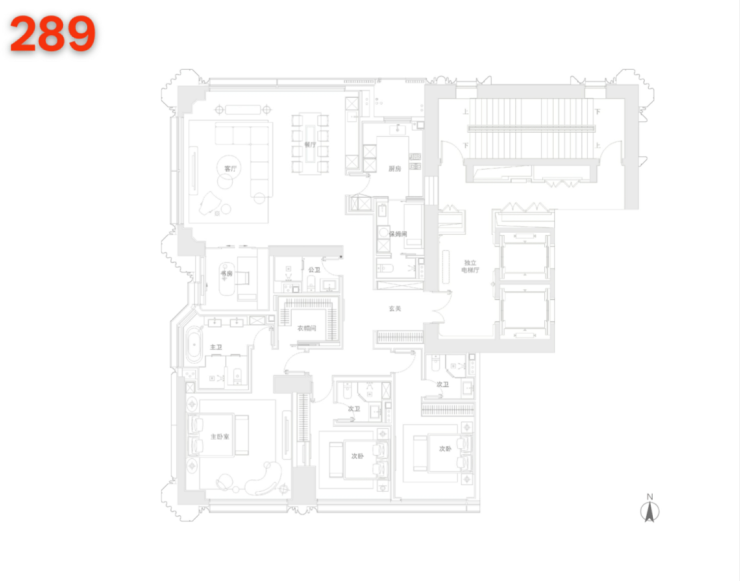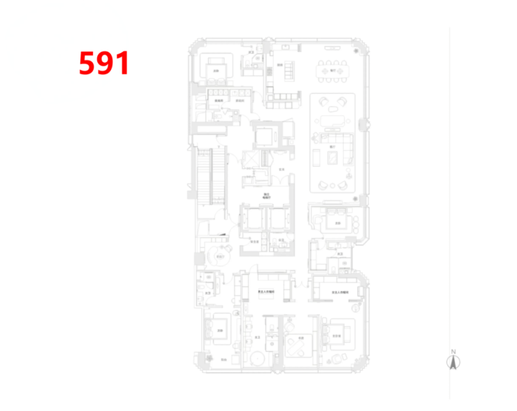 To take advantage of the panoramic view, the project's unit types generally adopt a corner square hall design, equipped with 270° large curtain walls, and the corner structural columns are removed to achieve an unobstructed view throughout.