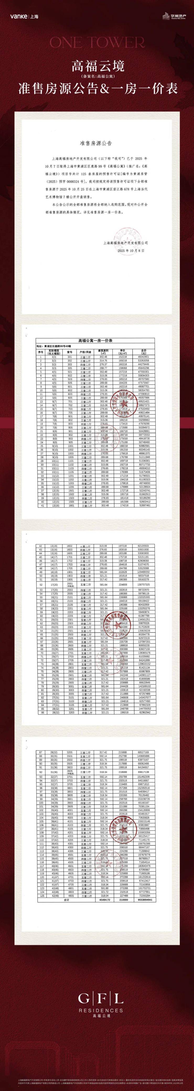 黄浦老卢湾,衡复梧桐心,约150米超高层地标「高福云境」已取证,10月9日认购,建面约276-592㎡大平层,均价约21万/㎡!