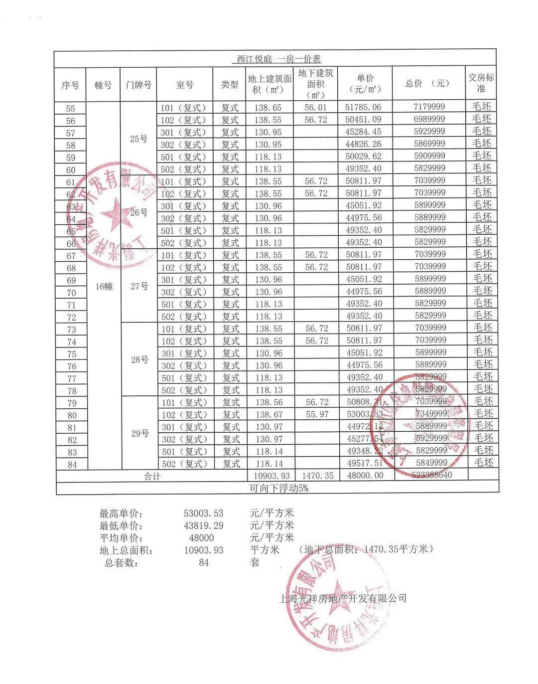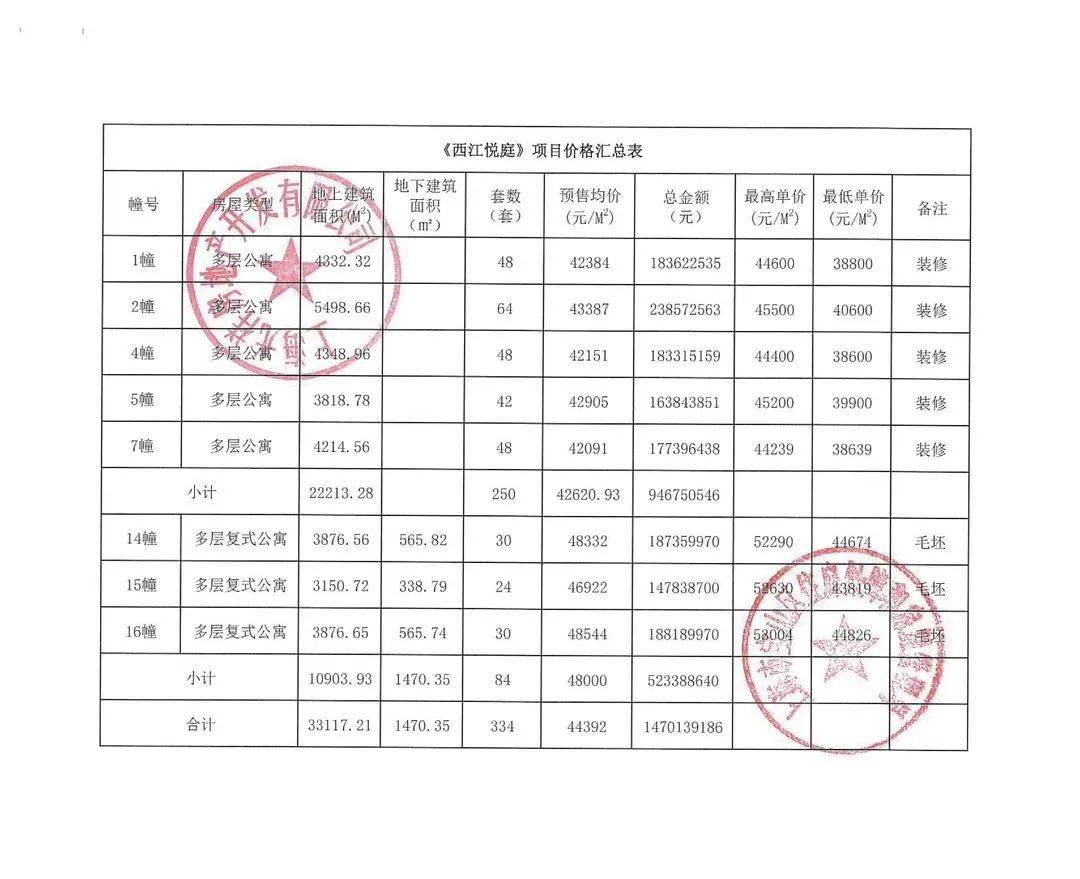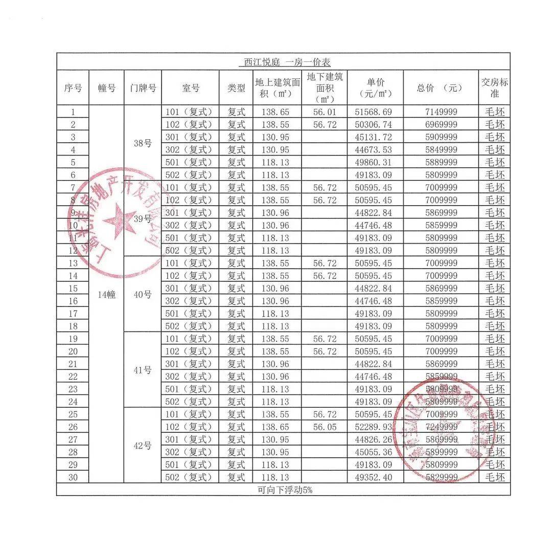 【一房一价表】
