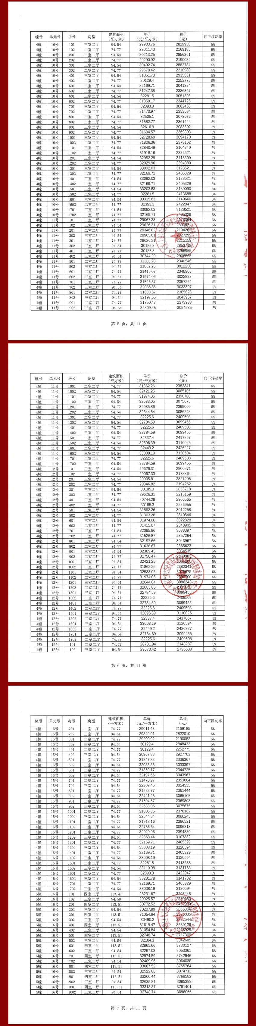 项目一房一价表