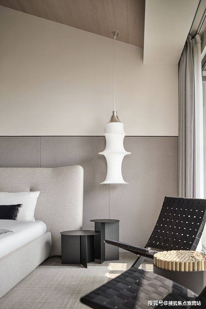 绿宝园售楼处电话☎:400-8818-994【欢迎预约】✔✔✔绿宝园售楼处电话☎:400-8818-994【欢迎预约】✔✔✔卧的斜形顶与整体空间相呼应,以质感深色作为主色调,营造出沉稳内敛的休憩氛围。