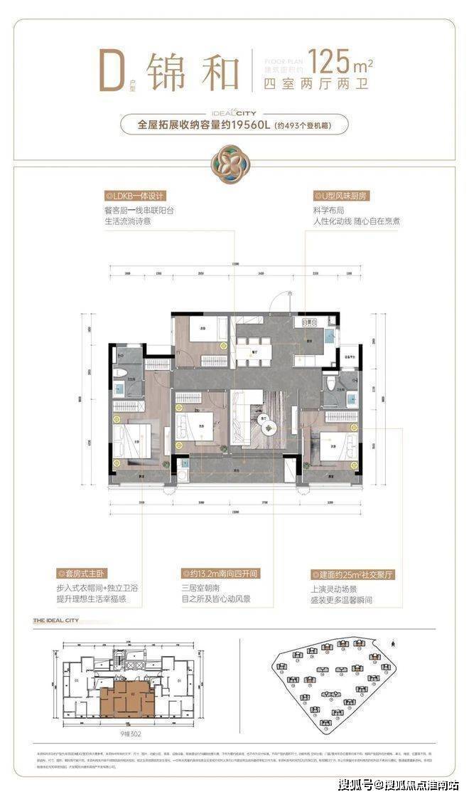 好比这个爆款四房户型用约125方面积,过出约200方的奢华感