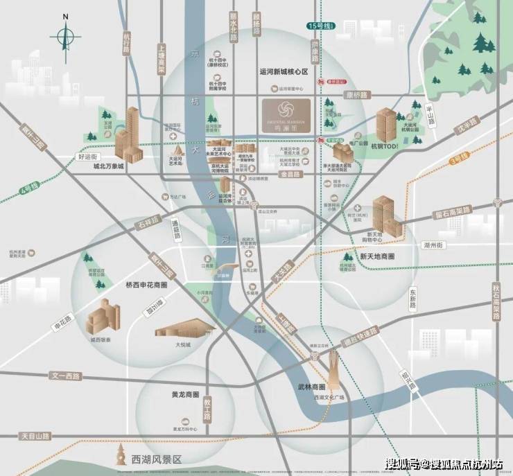鸣澜里还有目前距离大运河最近的项目之一:与千年古运河直线距离仅约300米。在杭州主城区的运河带上,从江河汇到运河新城基本都是豪宅,无论是售价高达10万元/㎡左右的IFC大平层,还是安琪儿板块已经迈上5000万高阶的叠墅,以及运河新城以及超过2000万的叠墅,运河豪宅带上,鸣澜里是总价最友好的项目了。