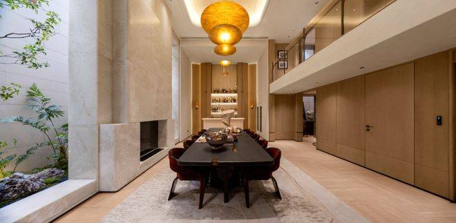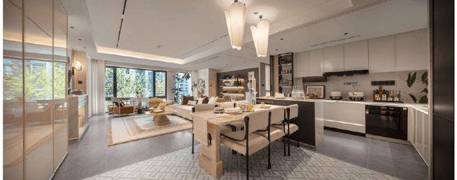 三大件标配 :日立中央空调、德国威能全屋地暖、兰舍全屋新风系统,24 小时保障室内温度、空气清新。 厨房 :配备西门子高端厨电(油烟机、燃气灶、洗碗机),定制中式橱柜、石英石台面、摩恩水槽 + 龙头,操作空间充足。 卫浴 :采用高仪、科勒等一线品牌,双台盆、干湿分离、恒温花洒、智能镜柜一应俱全。 细节配置 :全屋净水系统,入户智能门锁、感应灯光、一键开关;地面采用天然大理石与实木地板,墙面为艺术壁布与环保乳胶漆,全屋环保材料,符合绿建标准。