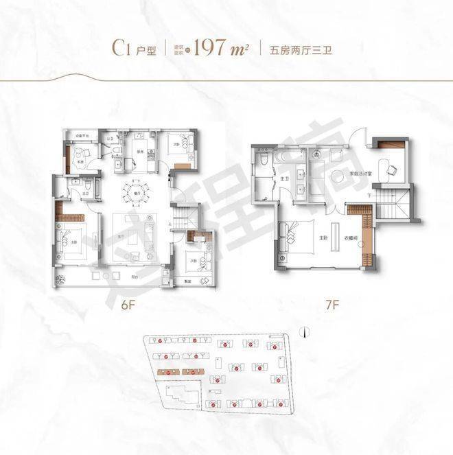 【户型面积】建筑面积约104㎡、129㎡、137㎡、169㎡、197㎡跃层