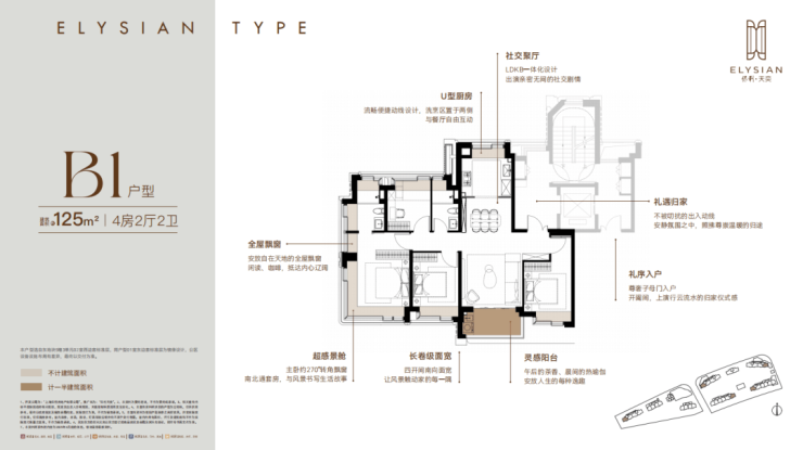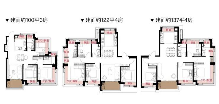 每个户型至少6个飘窗,边套更是约270°转角瞰景。