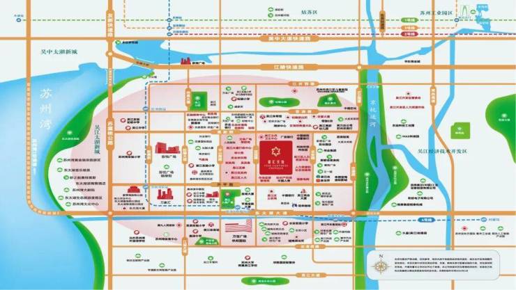 吴江区作为国家战略长三角一体化优先发展示范区,占据苏州南部门户核芯位置,成就城市价值新高地;项目落位吴江主城核芯区,毗邻吴江区政府,中芯地段占位一城主场。
