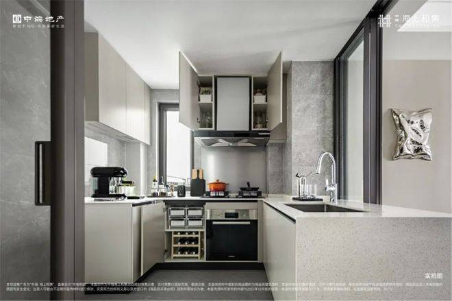 项目特意打造了半开放式的厨房。在做中餐时可以紧密闭合,避免油烟走出,这种厨房形式,不仅可以实现厨房、客厅、餐厅(BLDK)一体化。