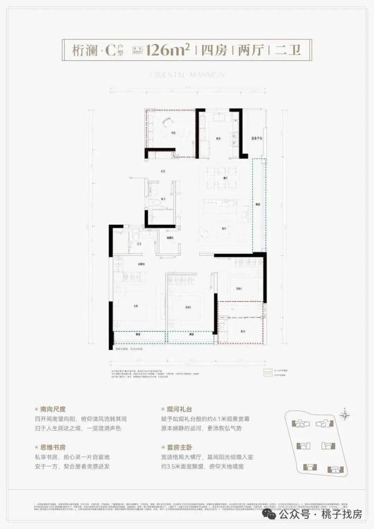 建面约126方4房2卫,270°稀缺边套四房