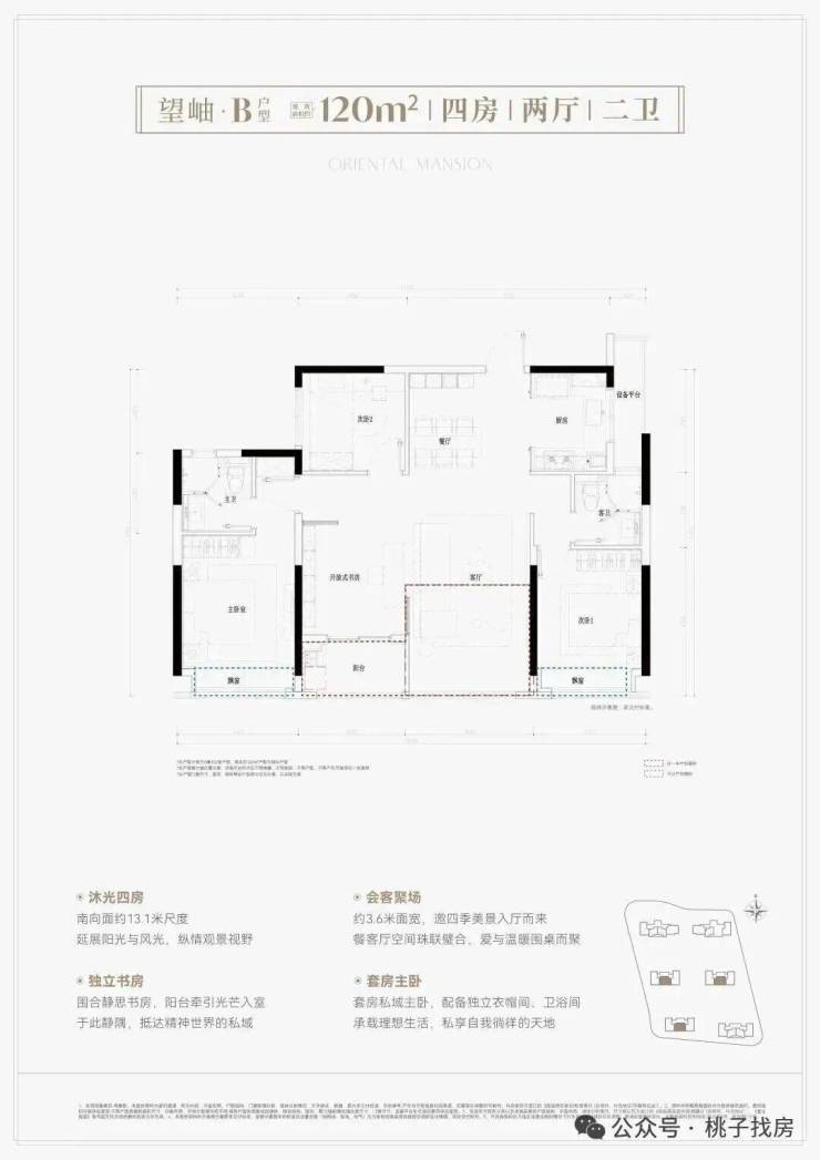 建面约120方4房2卫,爆款全能舒适四房