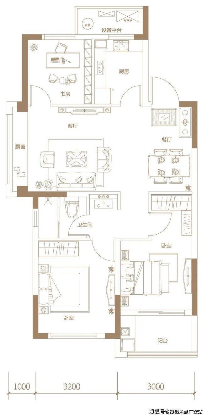 南向卧室开间分别是3.2米3米,尺度感人;