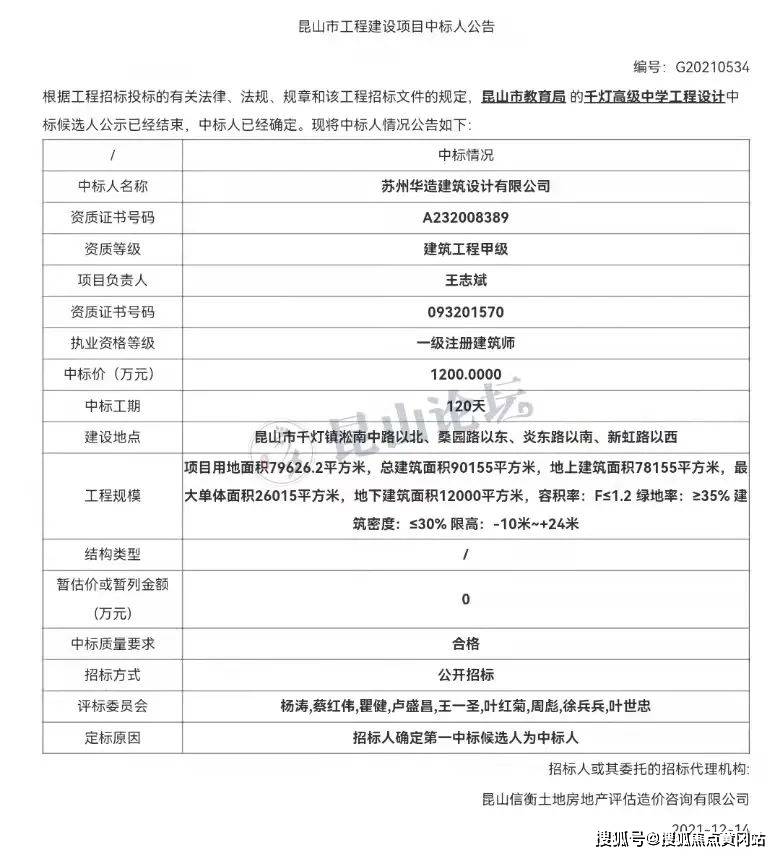 亭林高中规划图及招标公告,信息来源:昆山市人民政府官网
